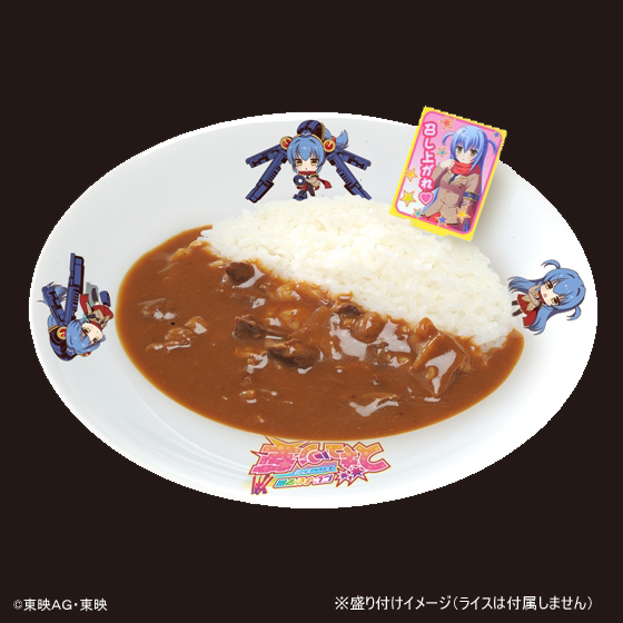 カレーを盛り付け、ピックを飾ると劇中シーンと同様のイメージを再現できます。