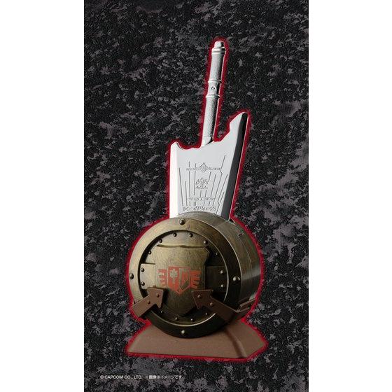 『モンスターハンター4』に登場する加工屋の剣立てを再現したナイフスタンドが付属します。