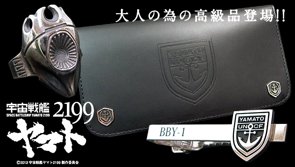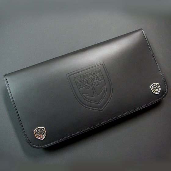「宇宙戦艦ヤマト2199 本革長財布」は、表面に「ヤマト(BBY-01)艦艇徽章」が型押しされ、