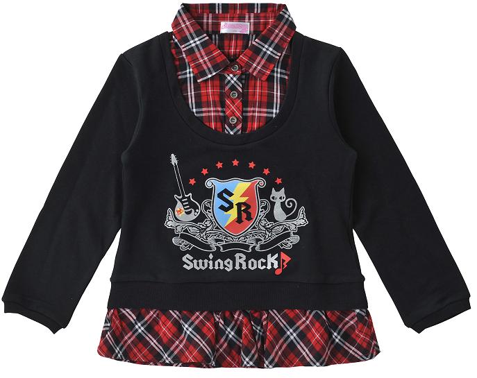 レイヤード風のチュニックトレーナーで赤いチェックがポイント。