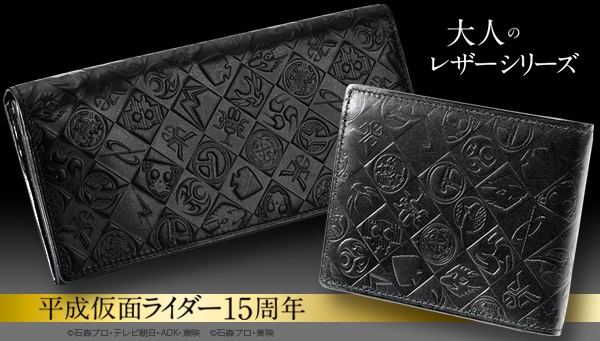 平成仮面ライダー15周年レザーシリーズは、二つ折り財布、カードケース、キーケースを同時予約開始します。