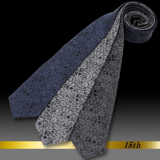 また、「平成仮面ライダーシリーズ15周年記念ネクタイ」は平成仮面ライダー15マークがデザインされたシルク100%のネクタイ。