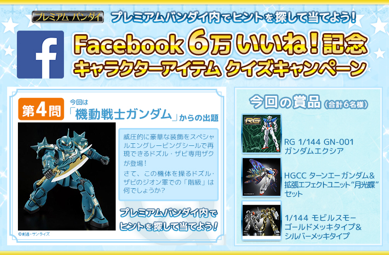 Facebook6万いいね!記念 キャラクターアイテムクイズキャンペーン 第4弾