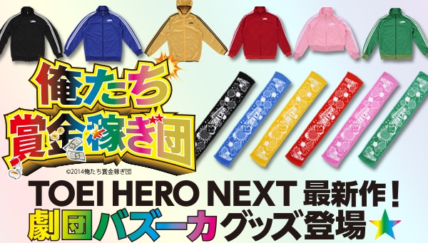 TOEI HERO NEXTの最新作『俺たち賞金稼ぎ団』の劇中に登場する「劇団バズーカ」グッズの