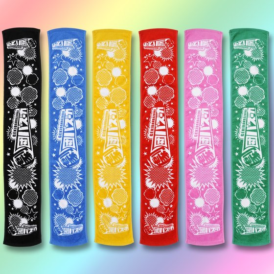 レッド、ブルー、ブラック、グリーン、ピンク、ゴールドの6カラーのジャージとおそろいのタオルのほか、