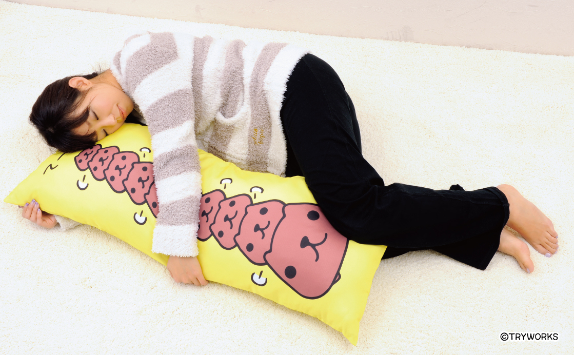 長さ100cmのクッションはもっちりやわらか。本商品で初解禁される10周年記念イラスト「てーん!」デザインと、