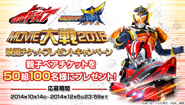 「仮面ライダー×仮面ライダー ドライブ&鎧武 MOVIE大戦2015」映画チケットプレゼントキャンペーン