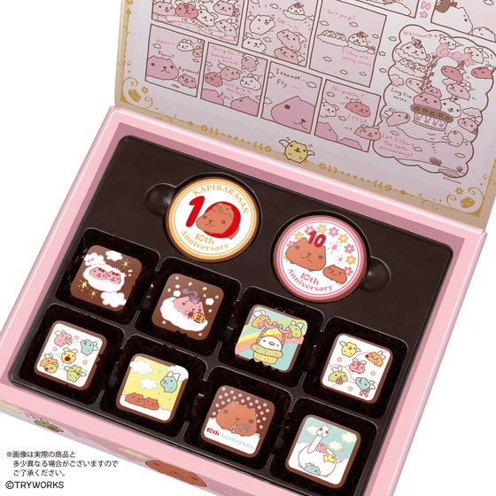 「カピバラさん」のイラストをあしらった10粒入りの本格チョコレート『カピバラさん ARTism CHOCO(アーティズムチョコ)』