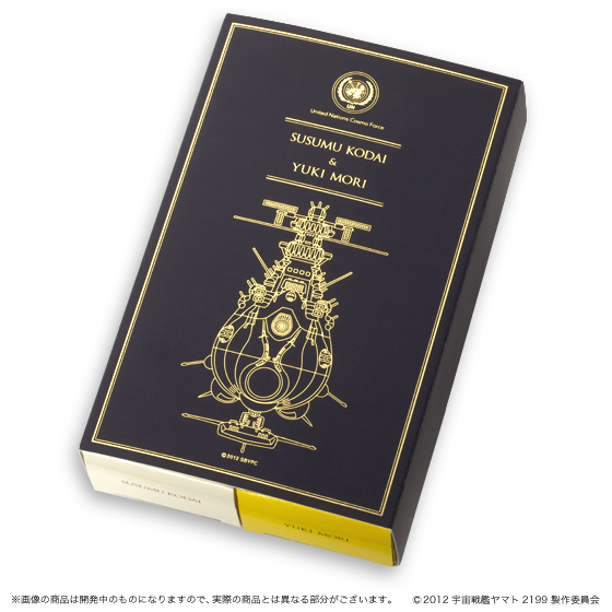 持ち手リング部分にはそれぞれ「SUSUMU KODAI」「YUKI MORI」の刻印入り。パッケージ外箱、試し書きカードは宇宙戦艦ヤマト外観図を