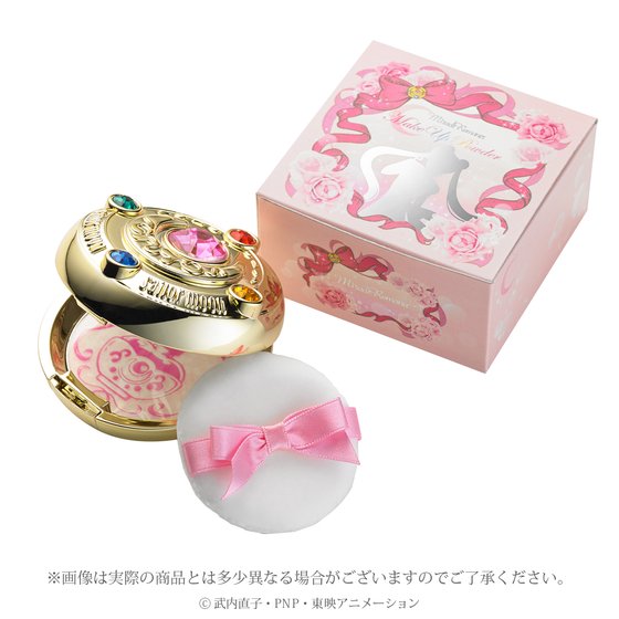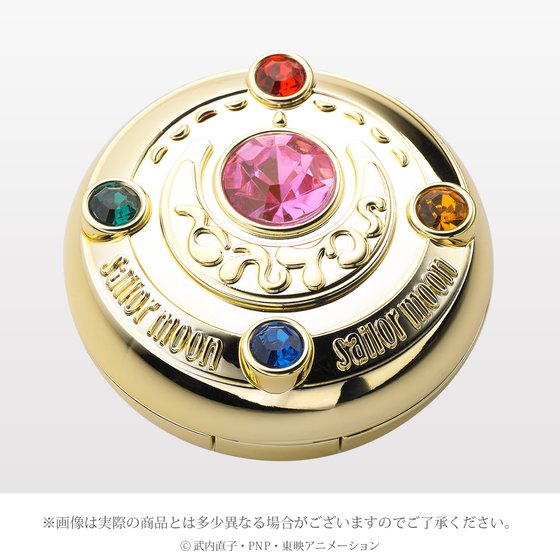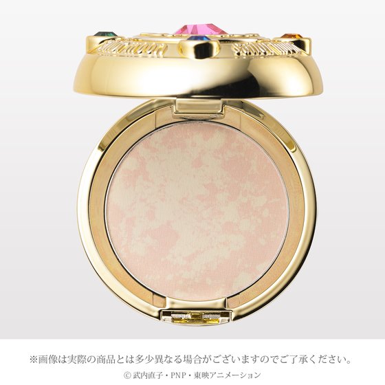 本商品は、アニメ「美少女戦士セーラームーン」の変身ブローチをモチーフにしたフェイスパウダーです。ゴールドと5色のストーンを使ったキラキラコンパクトは