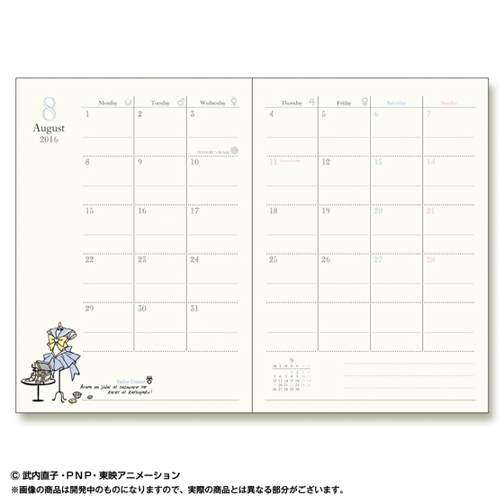 月間ページ(2016年1月〜2017年3月)には、セーラー戦士の服をモチーフにしたトルソーのイラストが毎月デザインされており、
