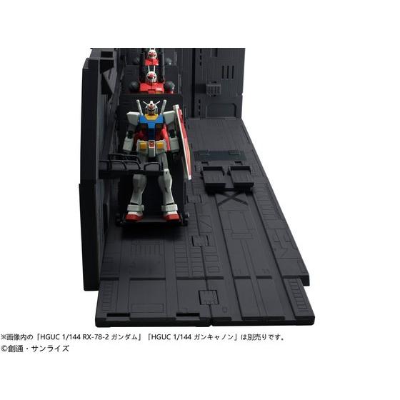1/144スケールならではの全長約500mmの大ボリュームで、「ホワイトベース」のカタパルト内をイメージした迫力の