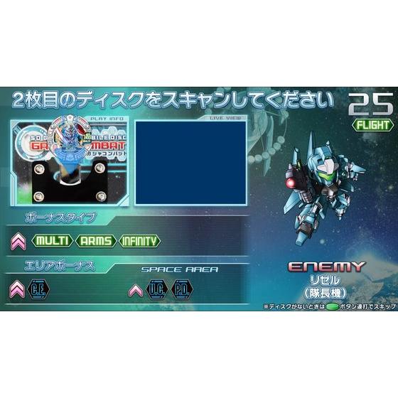 モビルディスクに描かれた“モビルスーツ”を呼び出し、敵とのバトルが楽しめる抽選ゲームに参加できます。
