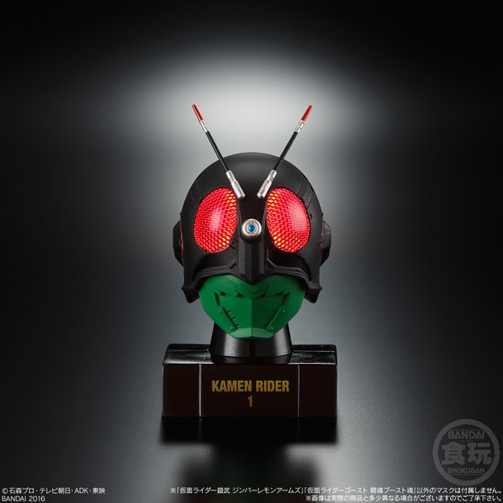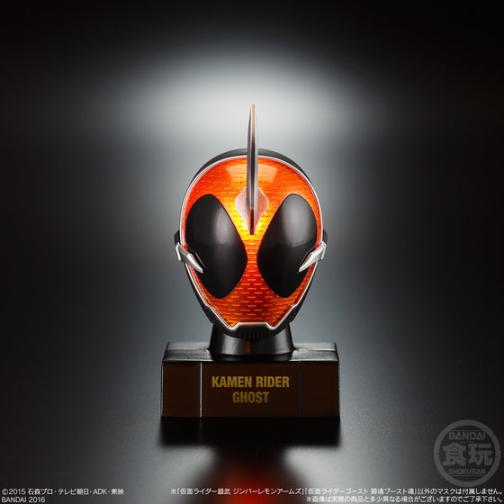 「仮面ライダー鎧武 ジンバーレモンアームズ」と「仮面ライダーゴースト 闘魂ブースト魂」のマスクに加え、10月発売予定の第1弾各ラインナップに対応した