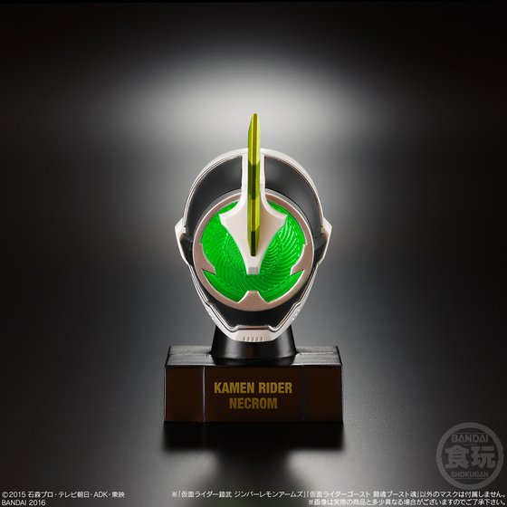 「仮面ライダーネクロム」のマスク本体は付属いたしません。各発光台座に対応するマスク本体は『仮面之世界(マスカーワールド)』(2016年10月発売予定)にラインナップいたします。