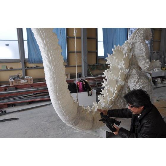 ゴジラ造形の第一人者・酒井ゆうじ氏による原型をデジタルスキャンして拡大。同氏監修・プロデュースの元、大型化に合わせて全身のテクチャーや