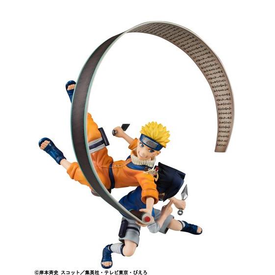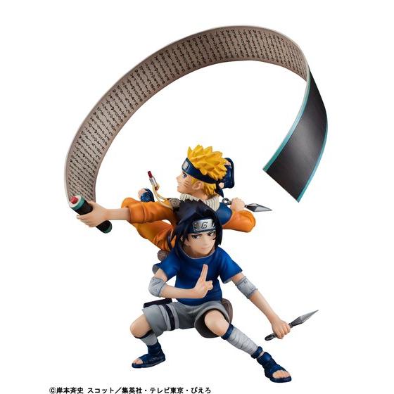 主人公“うずまきナルト”とそのライバル“うちはサスケ”の少年時代の姿をセットで立体化したフィギュア