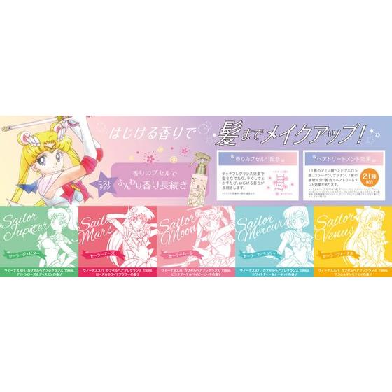 ボトルは各セーラー戦士がデザインされた限定デザインで展開。香りはセーラー5戦士をそれぞれイメージしており、セーラームーンはフルーティでロマンスあふれる
