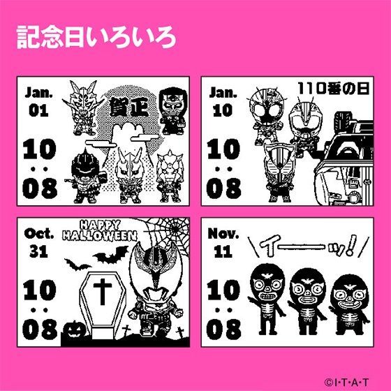 仮面ライダーフォーゼ=宇宙の日(9月12日)など仮面ライダーの各キャラクターにちなんだ記念日が表示されるのも楽しみのひとつです。