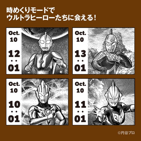 表示されるイラストは時間ごとに変化し、ウルトラ6兄弟(ゾフィー・ウルトラマン・セブン・ジャック・エース・タロウ)に加えて、