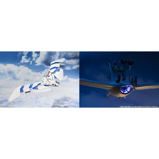 主人公ナウシカの飛行具である“メーヴェ”は、エンジン部の発光機構や翼が展開する玩具オリジナルギミックはそのままに、