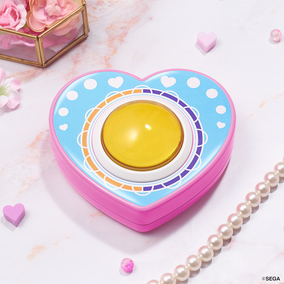 ハート型の本体には、当時の筐体のボタン部を再現、さらにボタン周りも当時のデザインをベースにアレンジしました。印象的な楽曲6曲搭載に加え、好きなステージを選び曲に合わせてボタンを押して遊ぶことができる仕様です。また、ラブとベリーのボイスや当時の筐体ゲーム内で流れた効果音を収録し、あの頃の懐かしい気持ちを楽しめる商品です。