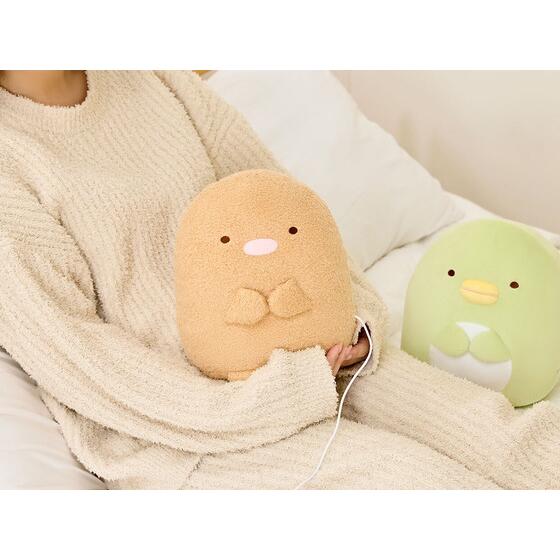 「あったかすみっコぐらし」は、本体についたUSBケーブルをポートに差し込むと、30秒程で約42℃〜46℃になり、ぬいぐるみの背中がポカポカと温かくなります。