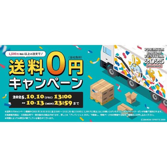 「プレミアムバンダイ」で商品を1,500円(税込)以上お買い上げいただくと、送料が「プレミアムバンダイ」の負担となります。